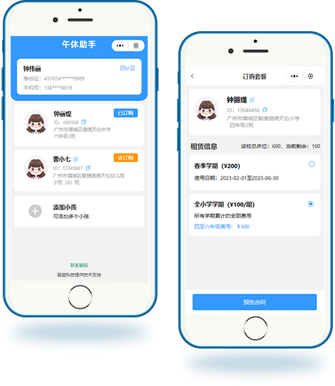 家长实名认证后,只要是在同一个系统里的校区,可直接在小程序添加孩子,并且支持有多个孩子在不同校区的家庭,便于家长统一管理,无需多次登录退出,轻松管理,节约时间成本。